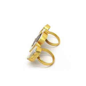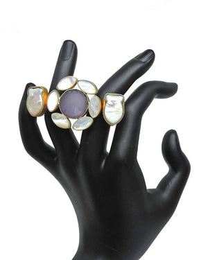 A statement with a playful twist, this double ring glistens in radiant amethyst. Set into a floral design, the Amethyst Shine comes finished with twin baroque pearls affixed on both sides. Crafted lightweight, this ring meshes well with any accessory collection.