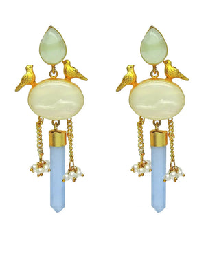 The Aviana is a handmade pair crafted with a mother of pearl centrepiece. Set with bright blue and green monalisa stones for an extra touch of glow. Perfect for dressing up your days and nights.