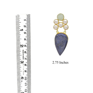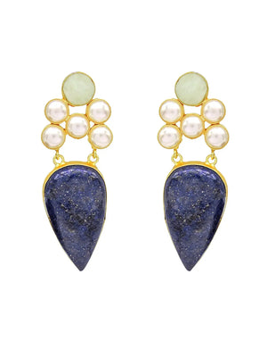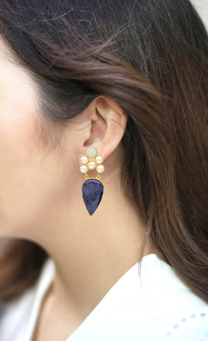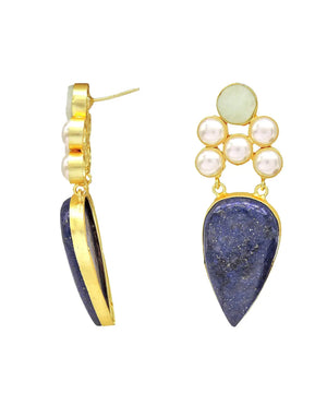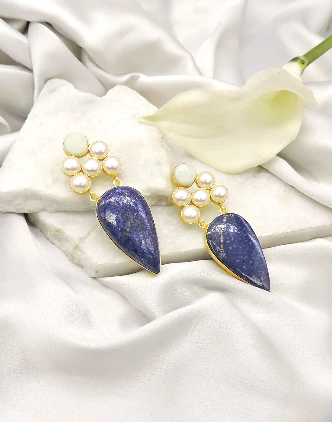 Product description for earrings that are Base metal is brass plated in 18k gold. All our jewellery are handcrafted in nickel-free & hypoallergenic metals with LAPIS AND PEARL