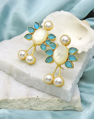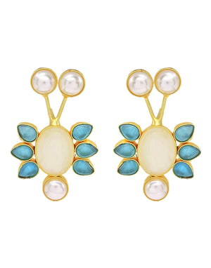 Handcrafted statement earrings featuring a striking design of natural stones set in a 18K gold plated frame. Designed to grab attention, these earrings add a touch of sophistication and colour to any ensemble. Nickel and tarnish free, perfect for all occasion wear.