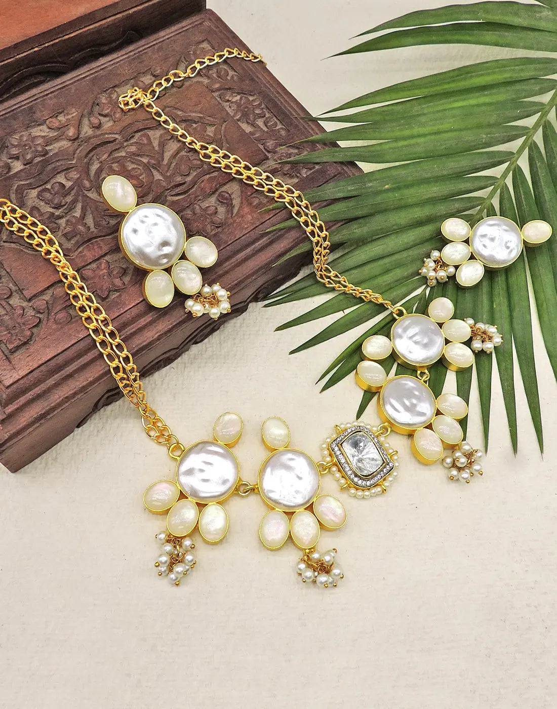 Simplify your styling with this statement jewellery set that takes the guesswork out of accessorising. Featuring earrings with a matching necklace, these pieces are thoughtfully crafted to both look good together or stand on their own.