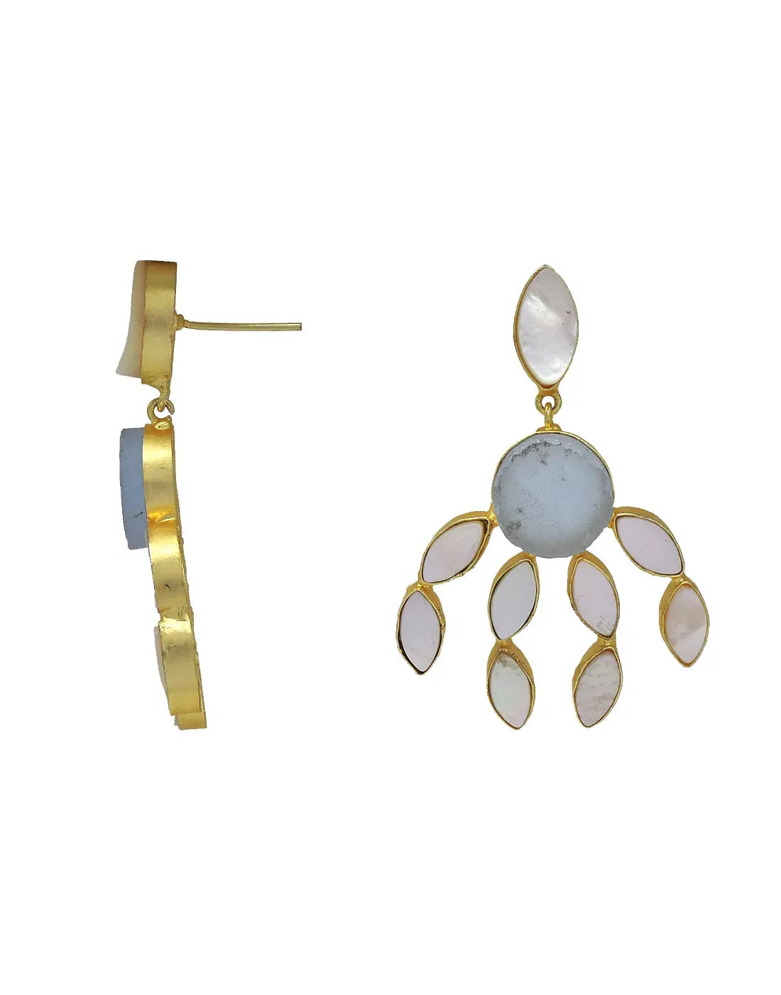 Make a mark with these gold plated statement earrings delicately crafted in natural stones and mother of pearl. Pair them with your favourite jeans or that little black dress – these earrings elevate every outfit.