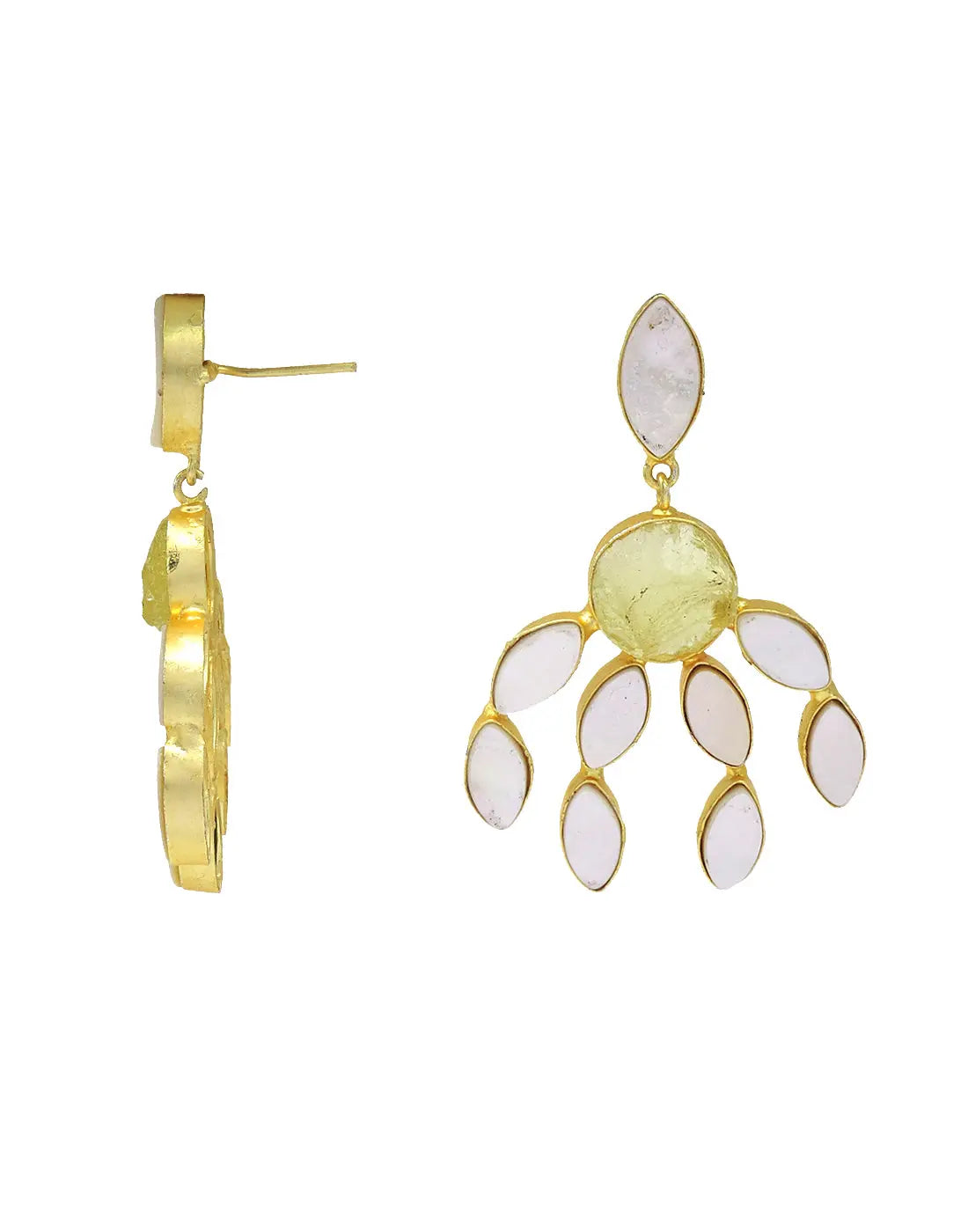 Make a mark with these gold-plated statement earrings delicately crafted in natural stones and mother of pearl. Pair them with your favourite jeans or that little black dress – these earrings elevate every outfit.