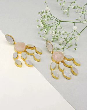 Make a mark with these gold plated statement earrings delicately crafted in natural stones and mother of pearl. Pair them with your favourite jeans or that little black dress – these earrings elevate every outfit.