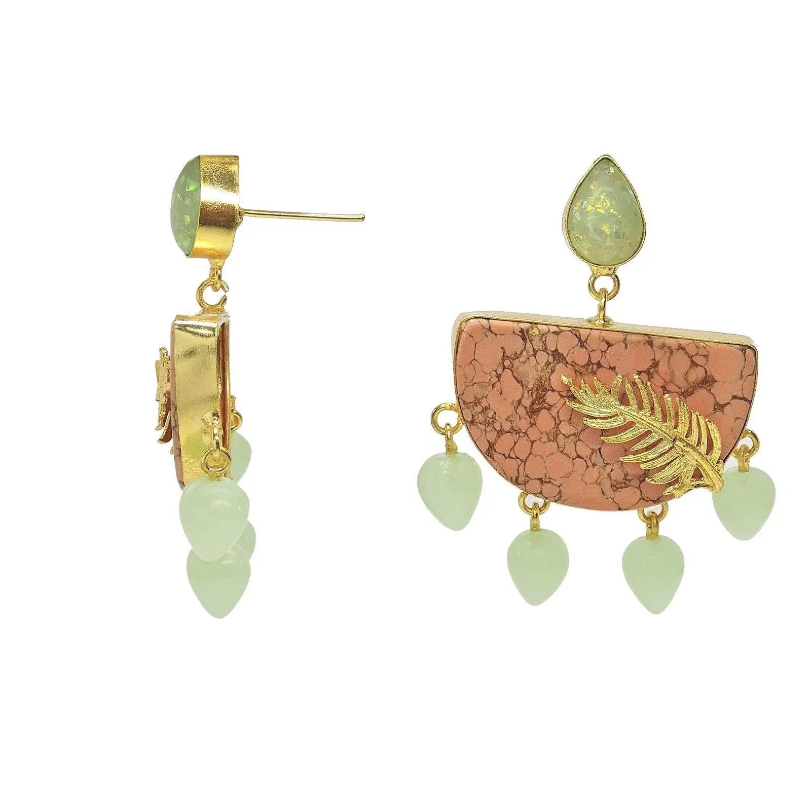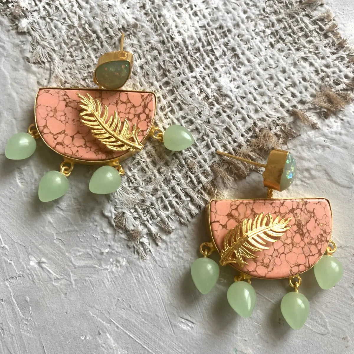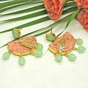 A rosy addition to our collection of bhatti jewellery, the Dawn comes in marbled peach stones affixed on top with intricate feather carvings. Crafted lightweight, this quirky pair is perfect for adding a whimsical pop of colour to your everyday.