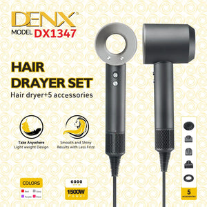 Denex DX1347 High Speed Professional Ionic Hair Dryer 6000 RPM 1500W 5 Different Heads