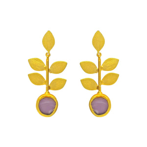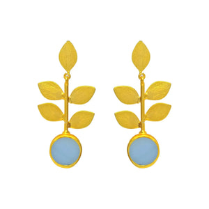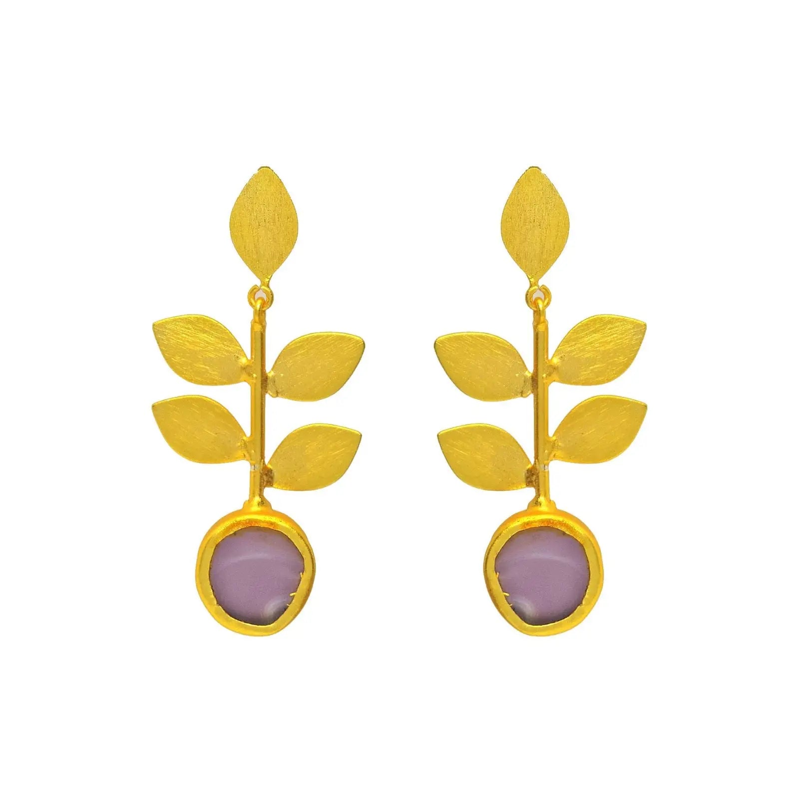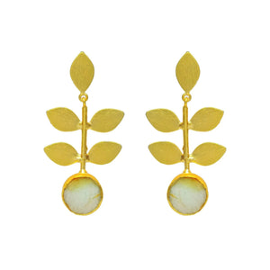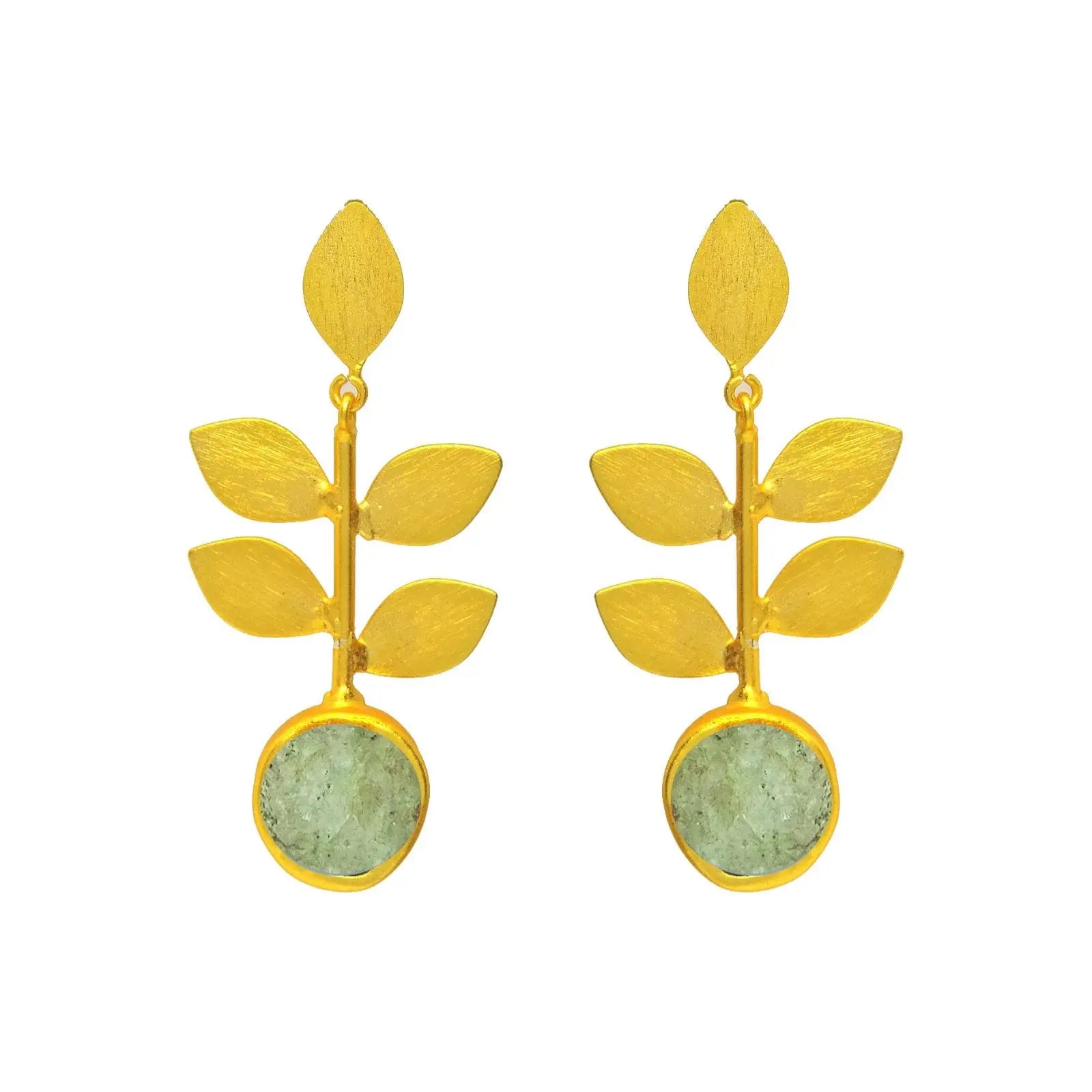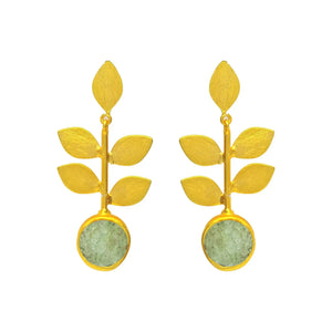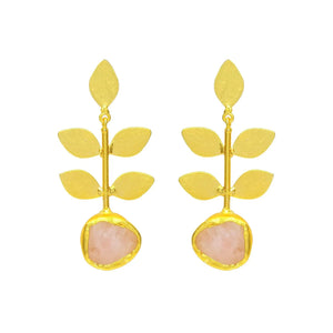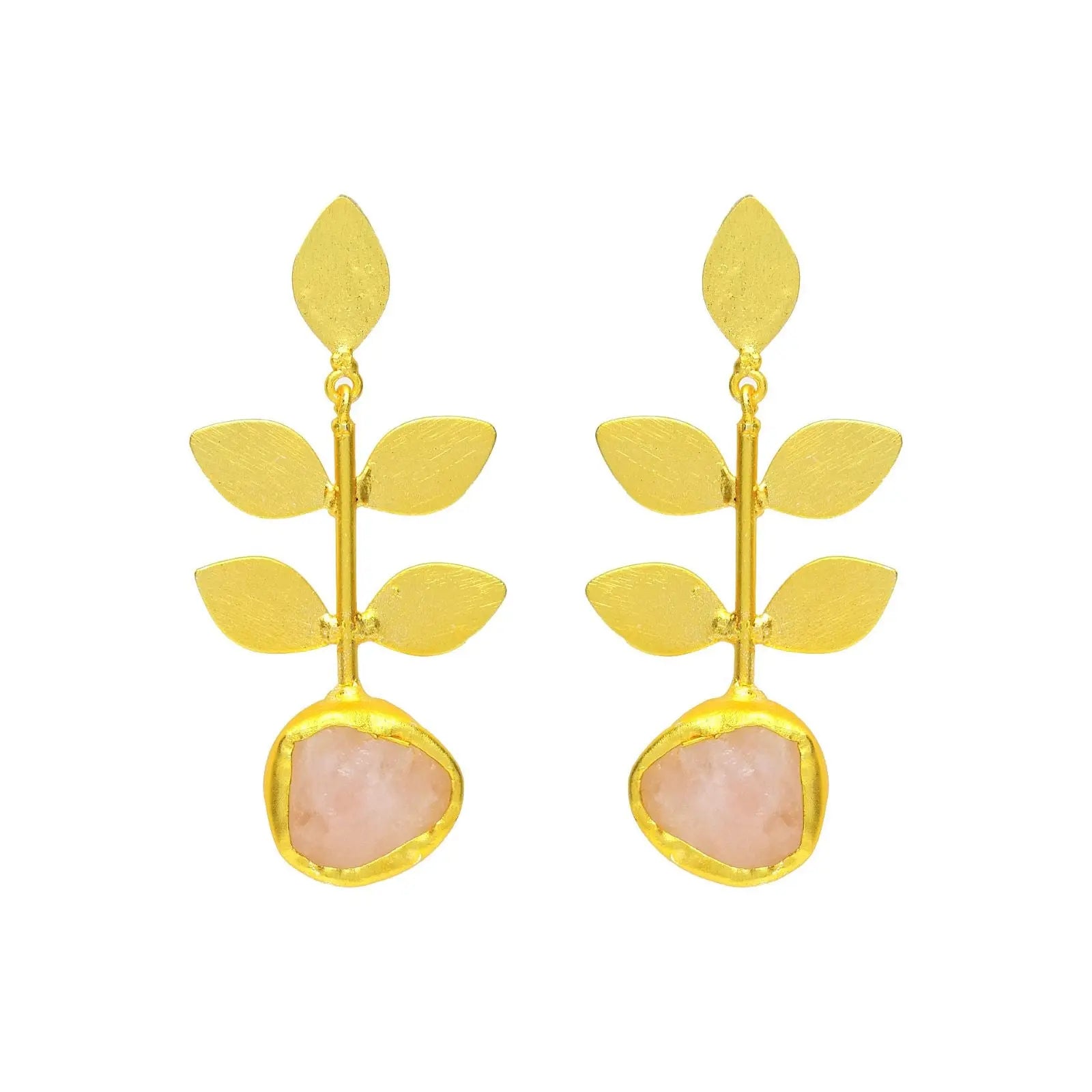A romantic spin on classic danglers, the Eliana comes with raw natural stones set with intricately carved golden petals. Perfect for wearing on its own or styled together with its matching necklace.