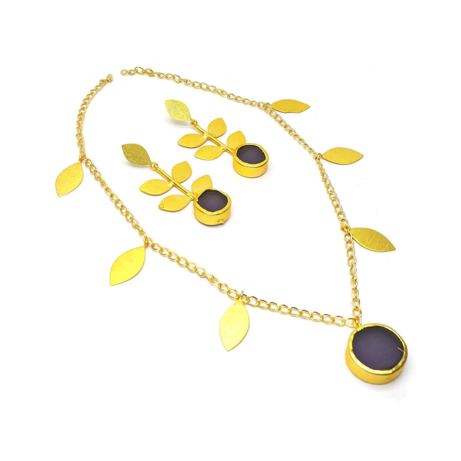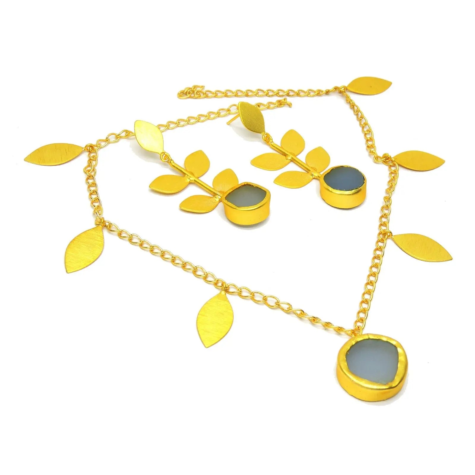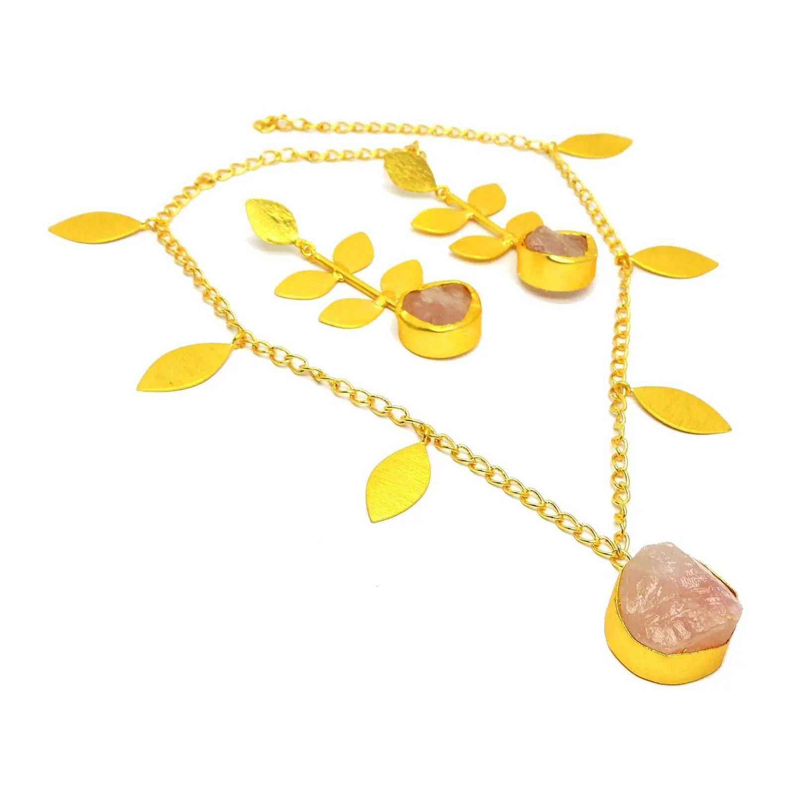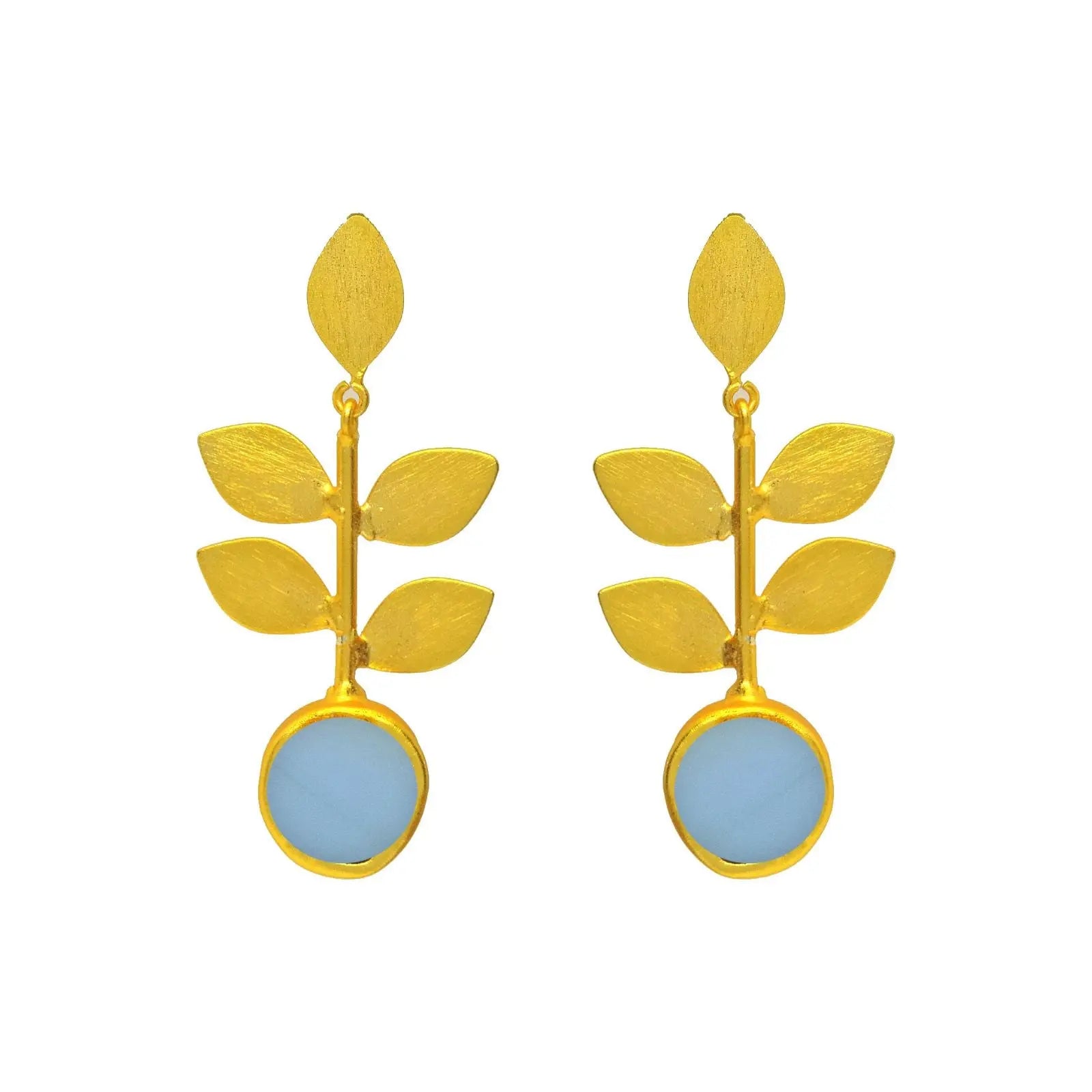 A romantic spin on classic danglers, the Eliana comes with raw natural stones set with intricately carved golden petals. Perfect for wearing on its own or styled together with its matching necklace.