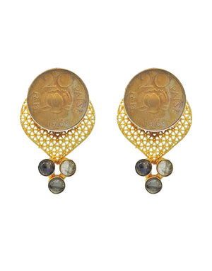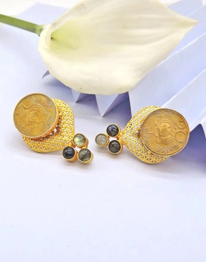 Embrace the allure of historical elegance with our handcrafted earrings. Featuring a durable brass base plated in luxurious 18K gold, these earrings are adorned with authentic coins, blending classic sophistication with a unique vintage touch. Each pair is meticulously crafted to deliver a refined and eye-catching design.