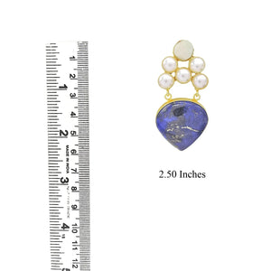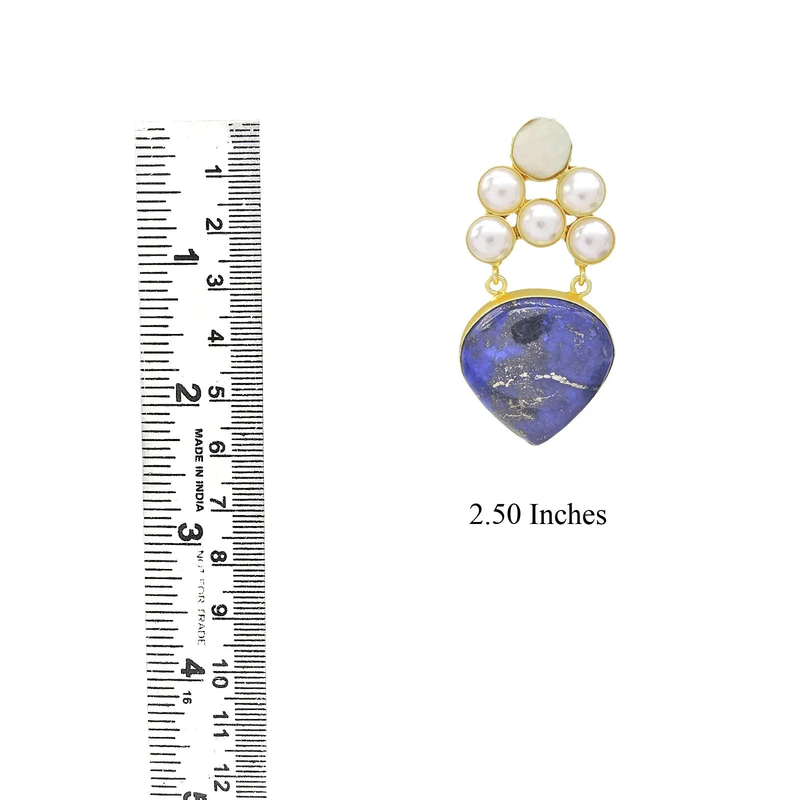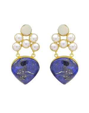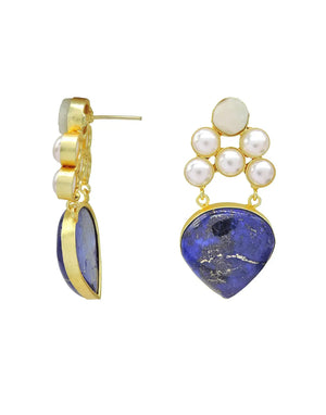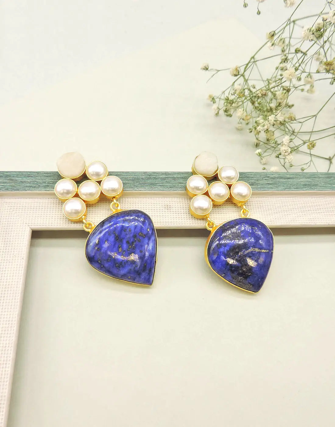 Elevate your style with our handcrafted earrings, where timeless elegance meets modern sophistication. Featuring a robust brass base plated in radiant 18K gold, these earrings are adorned with stunning lapis lazuli and lustrous pearls. Each pair is meticulously crafted to offer a refined and eye-catching look.