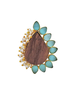 Step into elegance with this one-of-a-kind bejewelled statement ring. Embellised with natural stones, this ring is a meticulously crafted accessory by master artisans from India. A nod to heritage, this ring is 18K gold plated and made to last throughout the years.