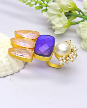 Handcrafted statement ring embellished with natural stones. Comes in an adjustable band to fit any ring size. Perfect for adding a burst of radiant colour to any wardrobe.