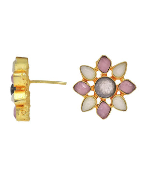 Handcrafted statement earrings featuring a striking design of natural stones set in a 18K gold plated frame. Designed to grab attention, these earrings add a touch of sophistication and colour to any ensemble. Nickel and tarnish free, perfect for all occasion wear.