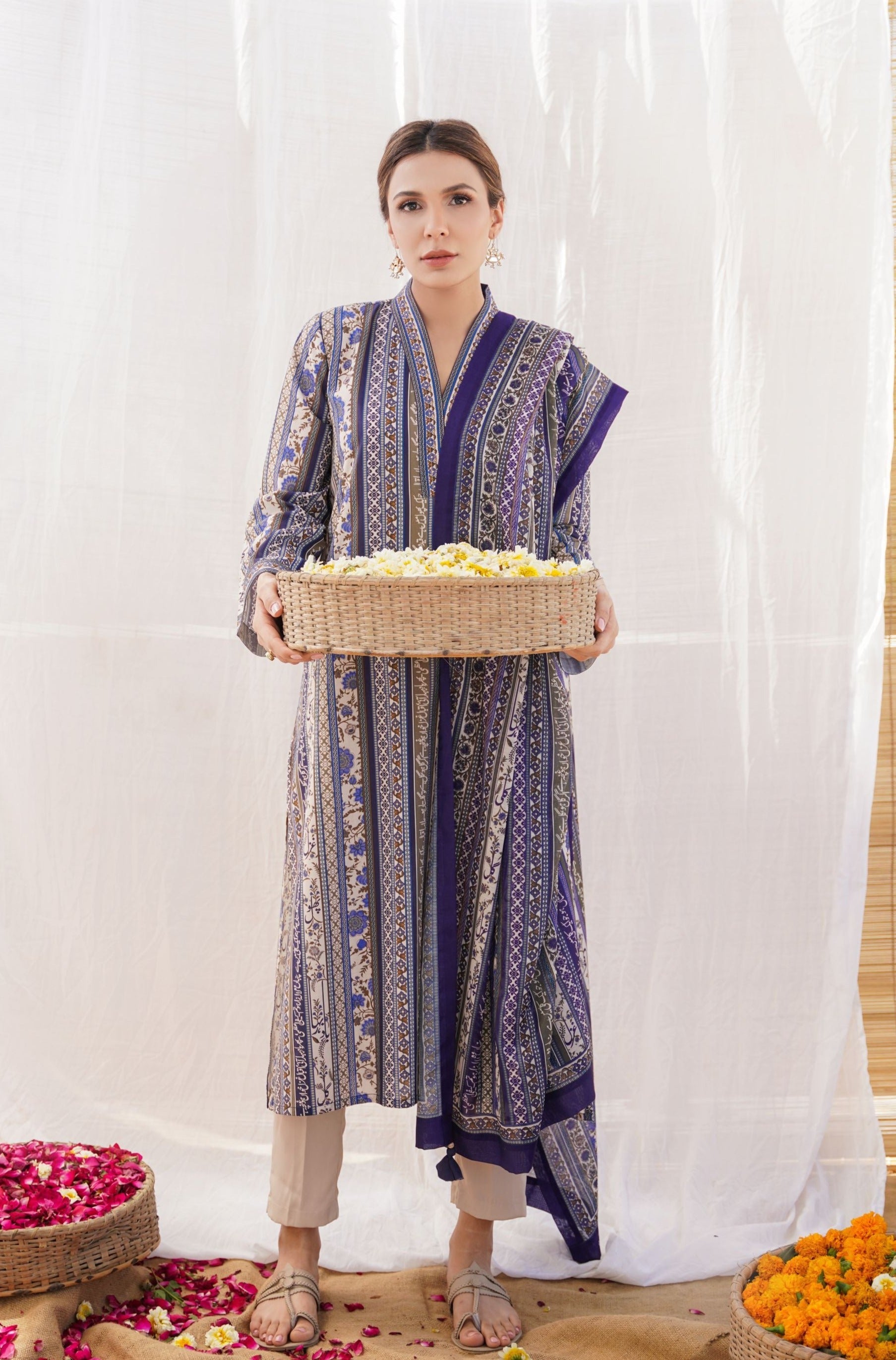Gulistan (Flowerland) - Blue Stripes Dupatta