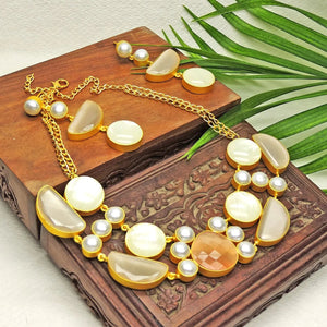 For staying bold and bright all day long. The Hailey makes a statement in captivating monalisa and rose quartz stones. Finished with pearls for a dash of radiance. Wear on its own during daytime and with its matching necklace at night for glamorous look.