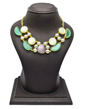 For staying bold and bright all day long. The Hailey makes a statement in captivating bhatti and monalisa stones. Finished with pearls for a dash of radiance. Wear on its own over a tube dress or styled with matching earrings for a polished look.