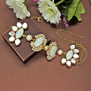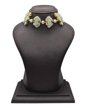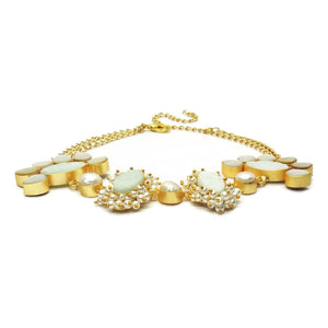 Perfect for easy daytime looks, this choker necklace comes in a playful floral motif. Crafted in raw amazonite and mother of pearl, this piece is plated in 18-k gold for a sleek finish. Pair with a matching bangle or statement earrings for an effortless day-to-night look.
