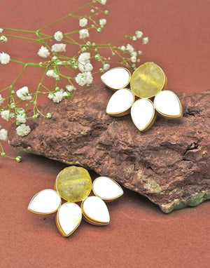 Another day, another chance to sparkle especially with the Half Flora Earrings. Set with natural stones, this pair is adorned with petal shaped mother of pearls to resemble a blooming flower. Lightweight and versatile, this studded pair easily matches with any of our neck pieces.