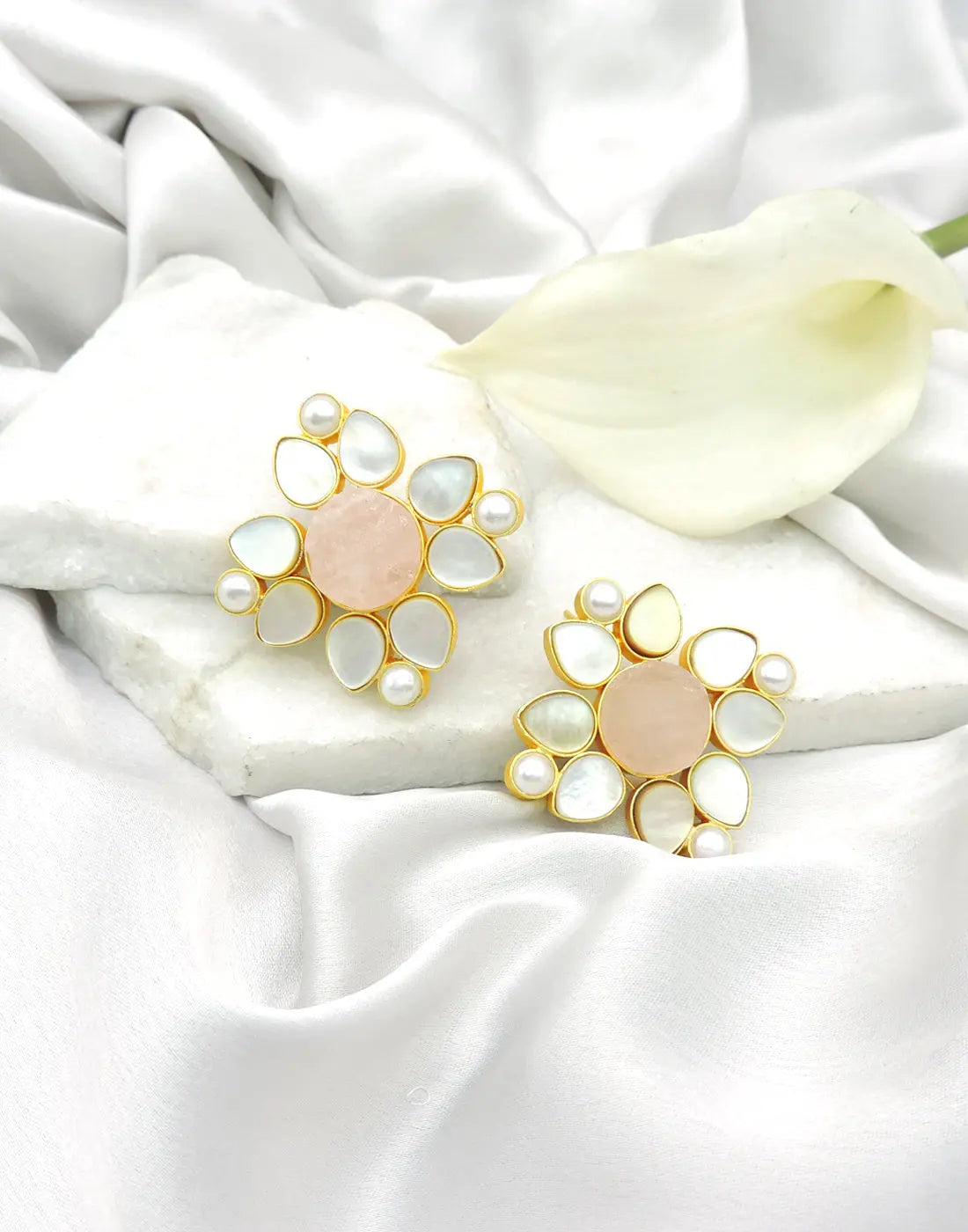 Embrace timeless elegance with our Shell and Rose Quartz Rough Earrings, a perfect fusion of natural beauty and sophistication. These exquisite earrings feature rough shell and rose quartz, creating a stunning texture that exudes grace. The addition of lustrous pearls and a delicate hint of light beige adds a touch of modern charm and subtle warmth. Ideal for special occasions or a touch of everyday luxury, these earrings offer a refined elegance that enhances your natural allure with every wear.