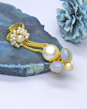 Handcrafted statement ring with delicate chain details embellished with natural stones. Comes in an adjustable band to fit any ring size. Perfect for adding a burst of radiant colour to any wardrobe.