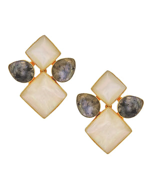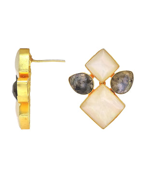 Handcrafted statement earrings featuring a striking design of natural stones set in a 18K gold plated frame. Designed to grab attention, these earrings add a touch of sophistication and colour to any ensemble. Nickel and tarnish free, perfect for all occasion wear.