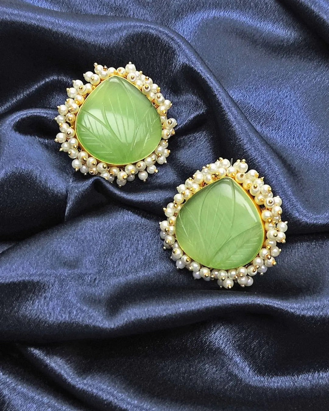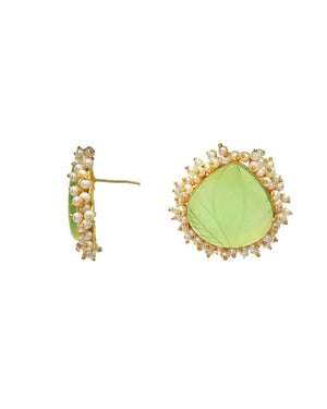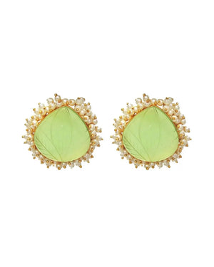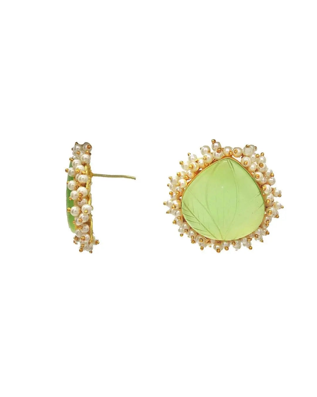 Everyday studs in polished fluorite and pearls. Pair with a sleek golden choker for an easy and effortless daytime look.