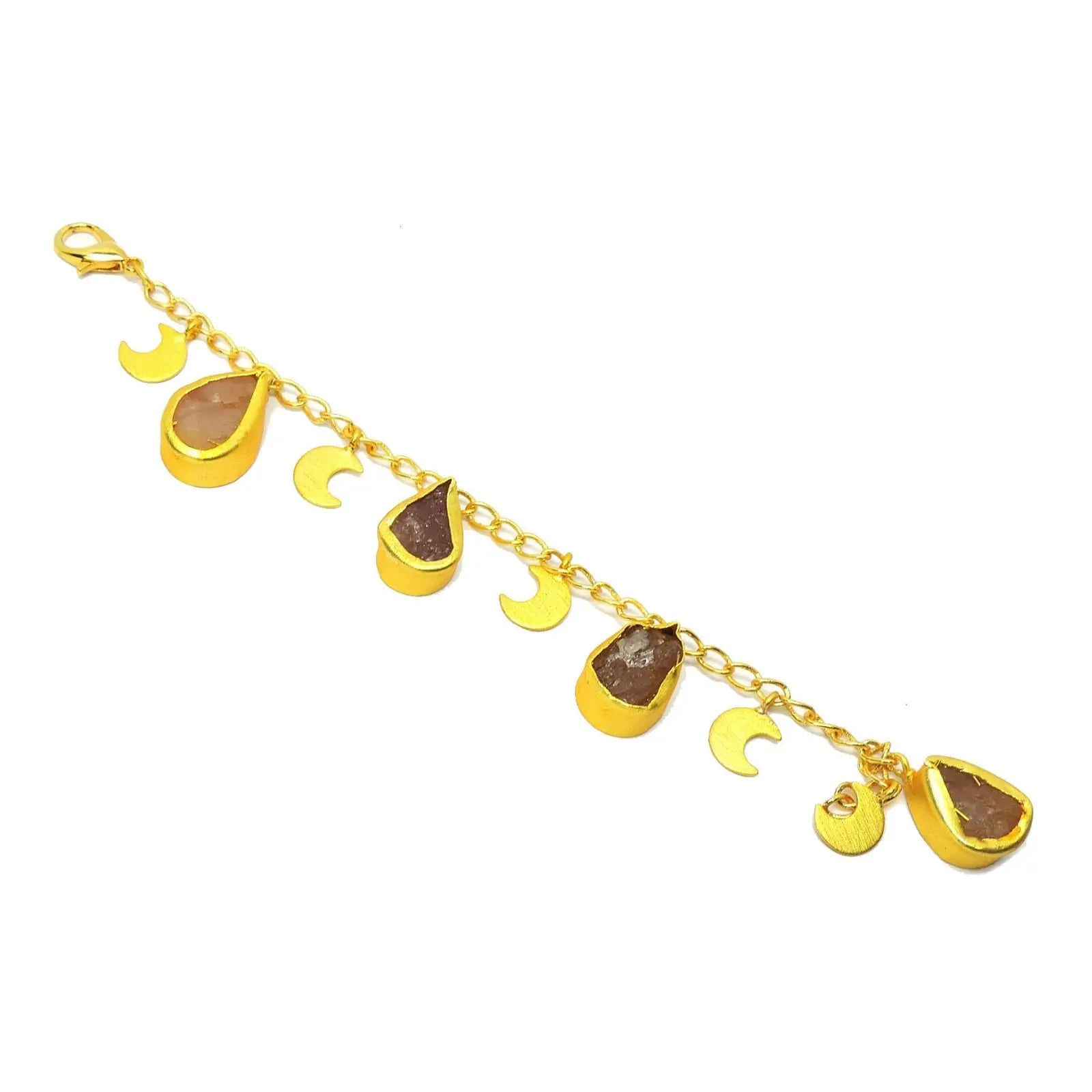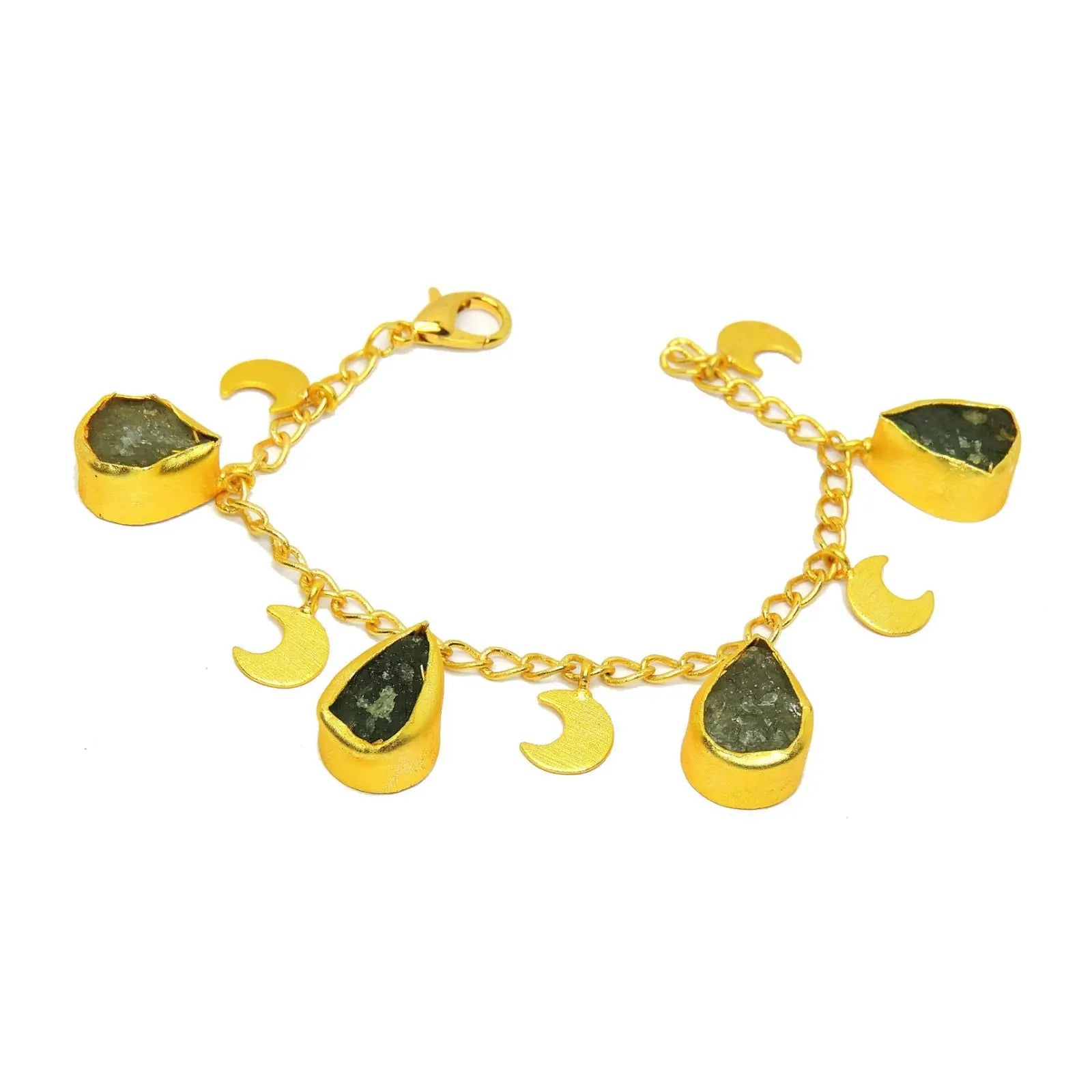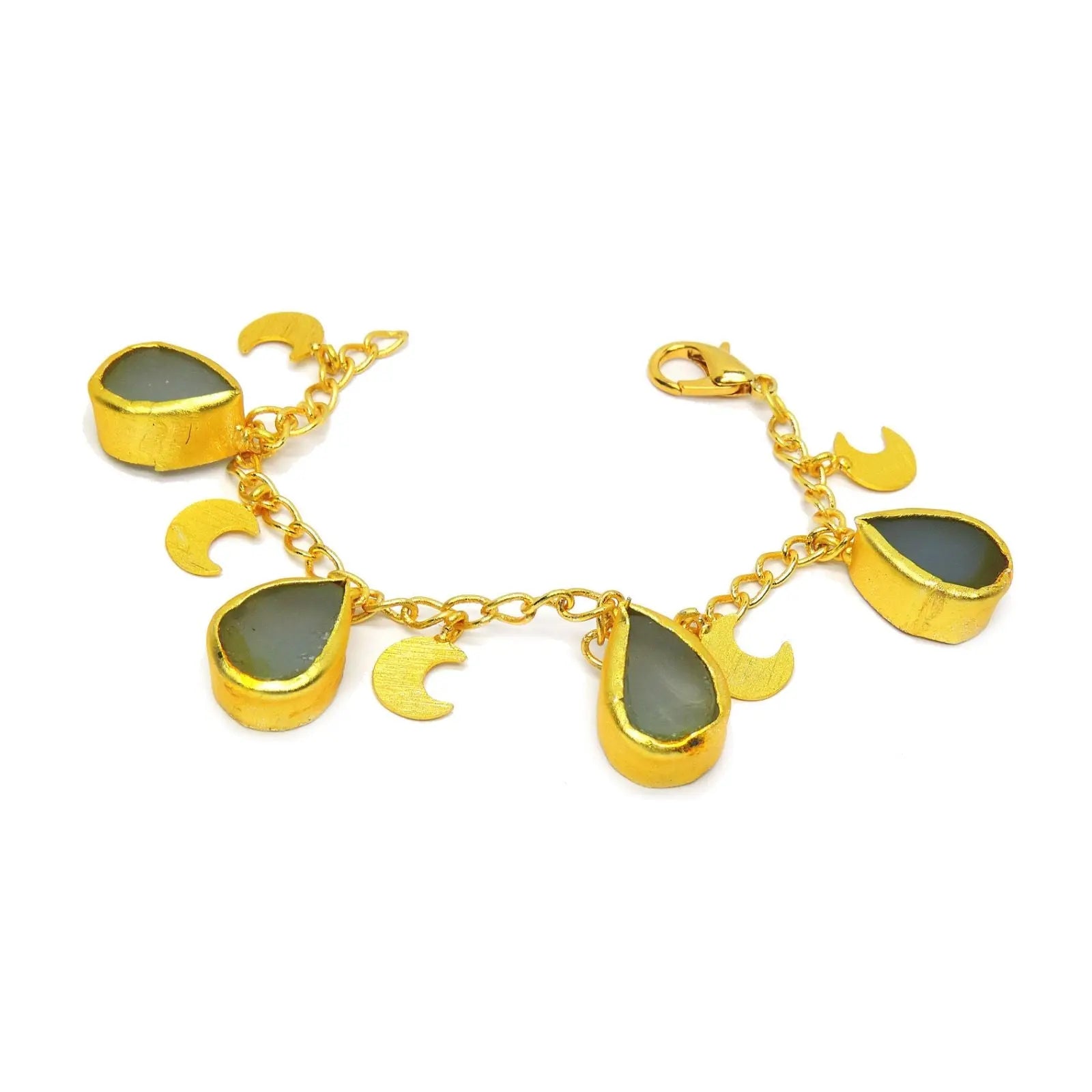 The perfect everyday accessory. The Lunar wears as a chain bracelet set in raw natural stones. Comes in five different colorways for all looks and moods: Mint in amazonite and jasper, Sky in blue onyx and citrine, Jasper, Blue Onyx and Fluorite.