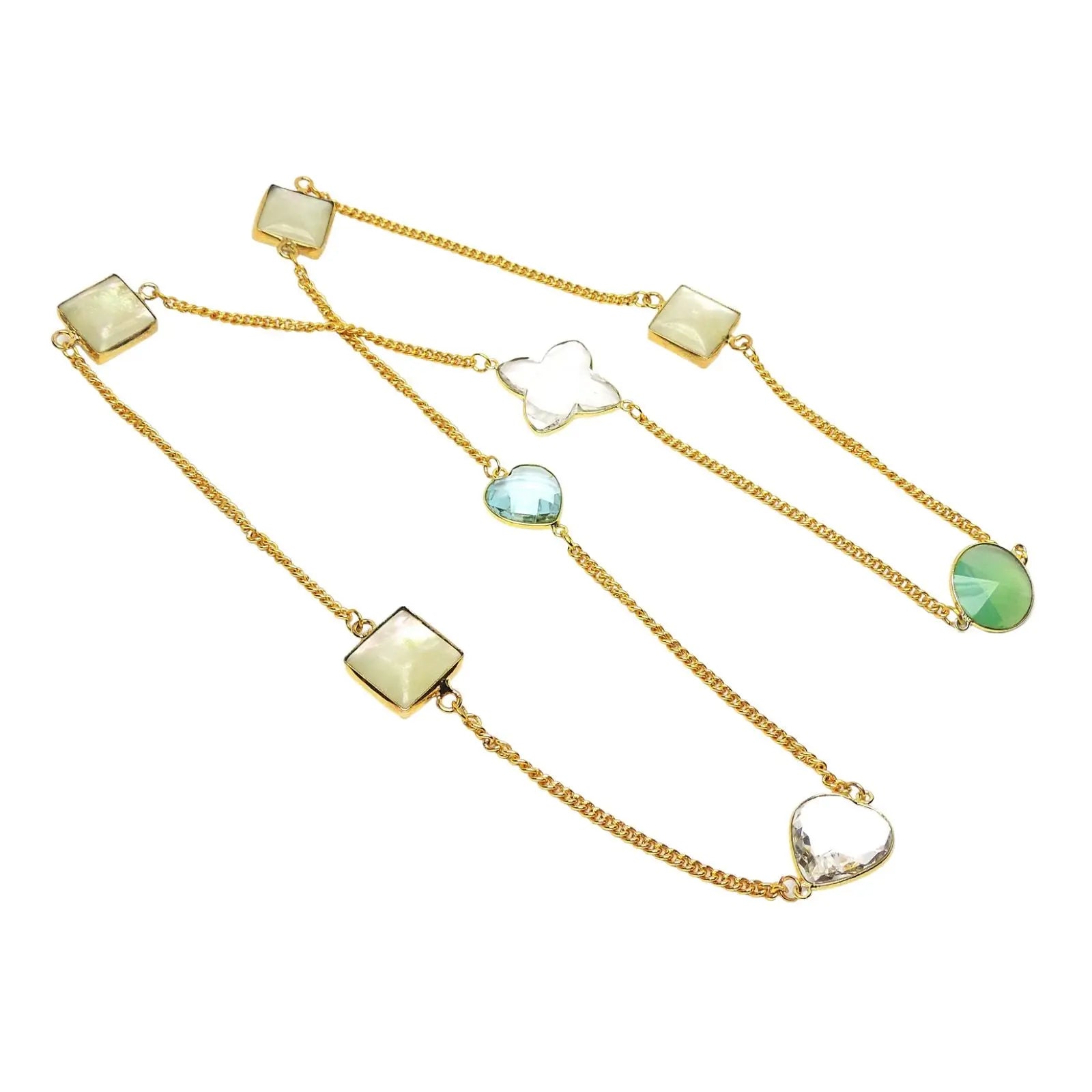 Timeless with a romantic spin. The Lyla wears as a chain necklace set with lustrous monalisa stones and pearls. Wear it on its own or layer it over a simple choker piece.