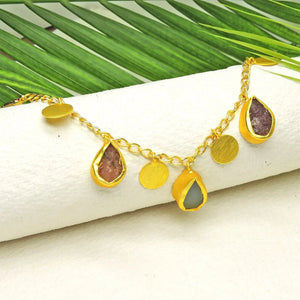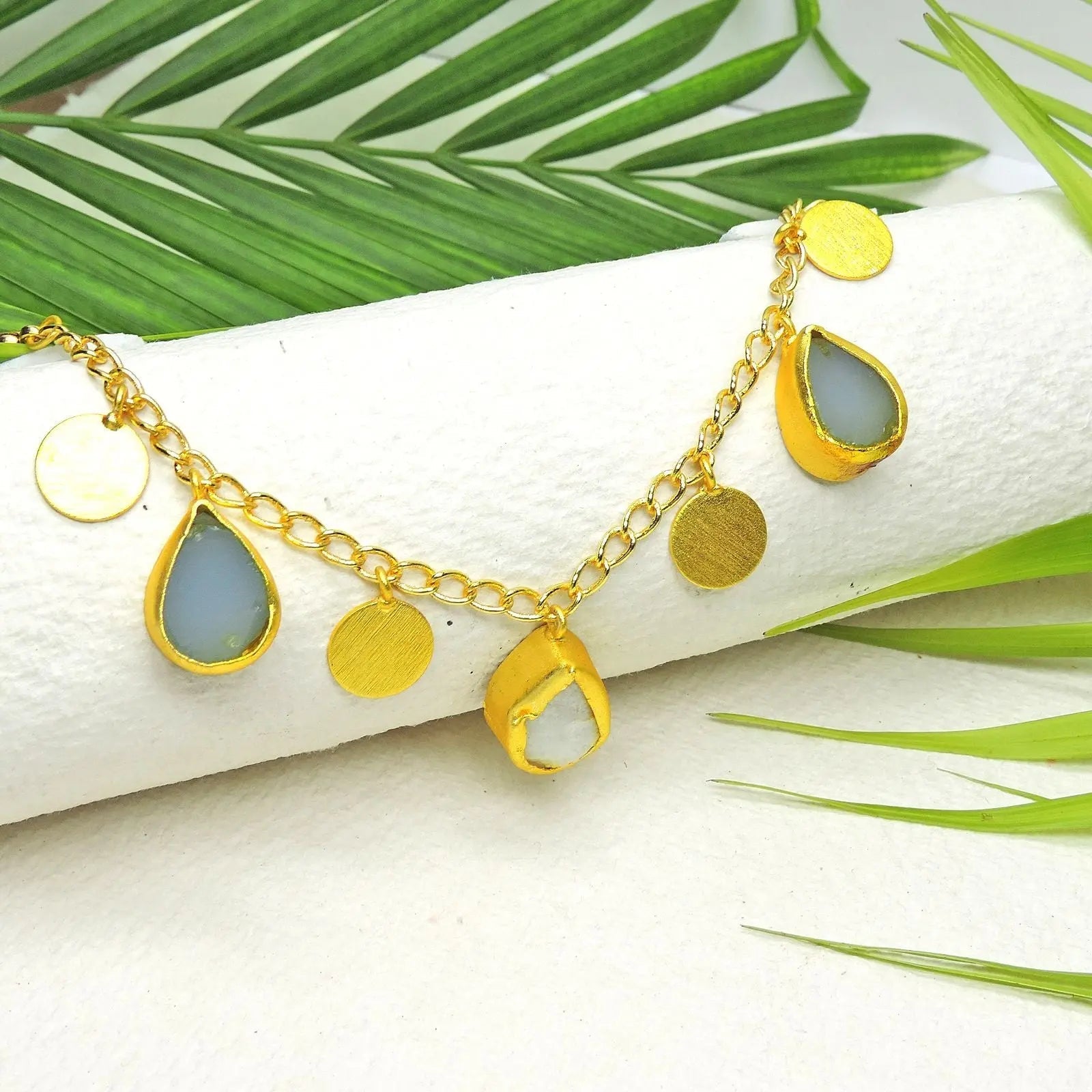 The perfect everyday accessory. The Noelle wears as a chain bracelet set in raw natural stones. Keep it casual and polished in subdued Earth colours or opt for a splash of colour in Ocean.