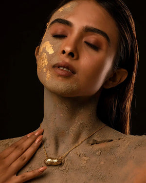 Chain necklace with a peanut-shaped pendant made from brass dipped in gold. Pair with your favourite jumpsuits or polish it up with a blazer for an effortlessly stylish look.