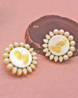 Everyday heirloom-inspired earrings adorned with repurposed copper coins and pearls.