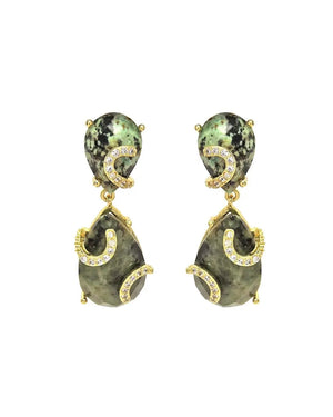 Allow this dangling pair to add a hint of radiance to your everyday. Featuring natural stones embellished with crystals, this pair lends a brilliant glow for you to stand out in the crowd.