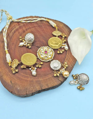Discover the epitome of elegance with our meticulously handcrafted jewelry set, combining classic beauty with modern refinement. Both the earrings and necklace feature a robust brass base plated in luxurious 18K gold, enhanced by the intricate artistry of Kundan and the timeless allure of pearls.