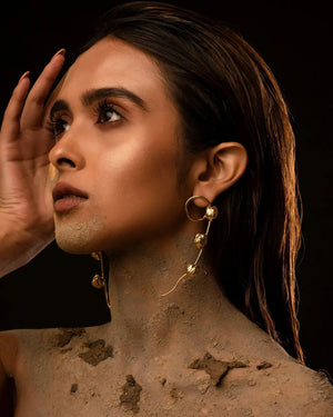 Statement earrings handcrafted in brass dipped in gold. Designed with a stem motif, this pair is a contemporary piece that can be styled with any outfit for every occasion.
