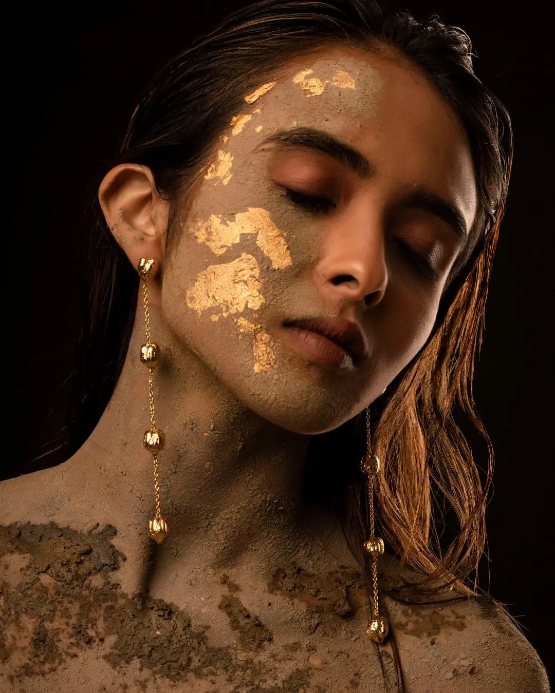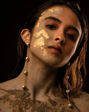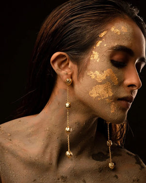 Dangling chain earrings handcrafted in brass dipped in gold. This sleek statement pair adds a subtle golden glow to any look.