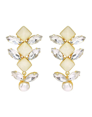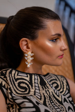 Handcrafted statement earrings featuring a striking design of natural stones set in a 18K gold plated frame. Designed to grab attention, these earrings add a touch of sophistication and colour to any ensemble. Nickel and tarnish free, perfect for all occasion wear.