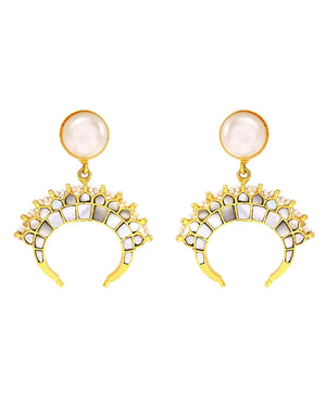 Handcrafted statement earrings featuring a striking design of natural stones set in a 18K gold plated frame. Designed to grab attention, these earrings add a touch of sophistication and colour to any ensemble. Nickel and tarnish free, perfect for all occasion wear.