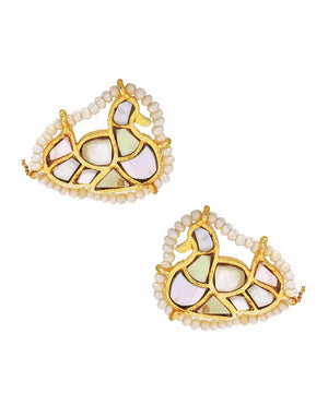 Handcrafted statement earrings featuring a striking design of natural stones set in a 18K gold plated frame. Designed to grab attention, these earrings add a touch of sophistication and colour to any ensemble. Nickel and tarnish free, perfect for all occasion wear.