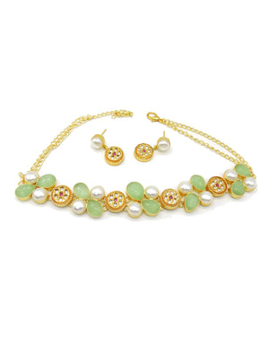 Elevate your accessory game with our exquisitely handcrafted earrings, where opulence meets sophistication. These stunning earrings feature a robust brass base, elegantly plated in luxurious 18K gold for a radiant finish. Meticulously handcrafted, each pair showcases intricate Kundan detailing and lustrous pearl glass, creating a timeless piece that complements any ensemble.
