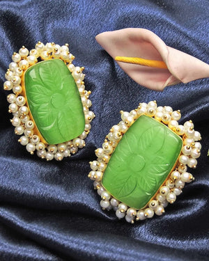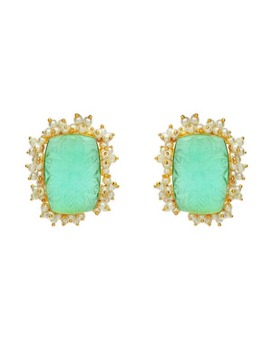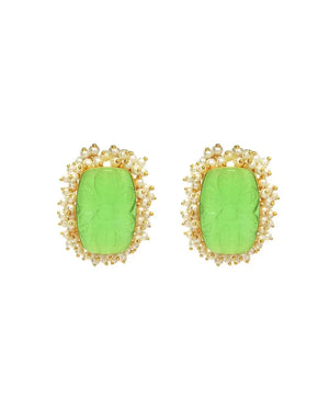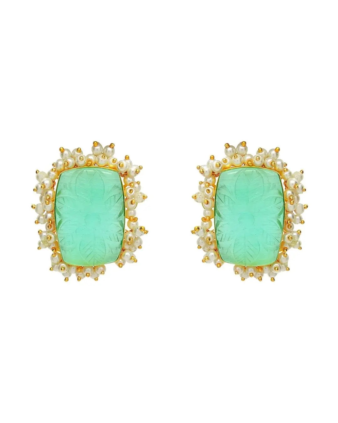 Everyday studs in polished monalisa stones and pearls. Pair with a sleek golden choker for an easy and effortless daytime look.