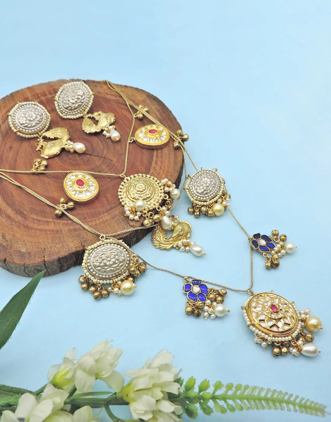 Embrace sophisticated elegance with our handcrafted earrings, designed to dazzle with their exquisite detailing. Made from durable brass and plated in radiant 18K gold, these earrings combine classic Kundan craftsmanship with the serene beauty of lustrous pearls. Each pair is a testament to artisanal skill and timeless design.