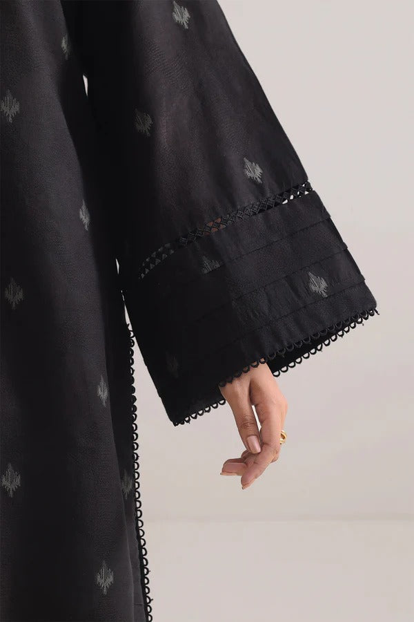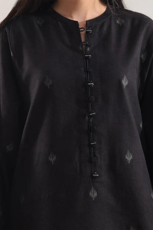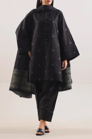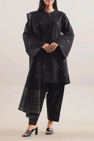 The outfit includes a Premium Dyed Jacquard Dupatta (2.5m) washed in the same deep black tone, featuring matching motifs that perfectly complement the shirt. Light, breathable, and richly textured, this dupatta falls elegantly and adds a touch of luxury to every drape. Whether worn casually or wrapped with structure, it elevates your winter wardrobe with undeniable grace.