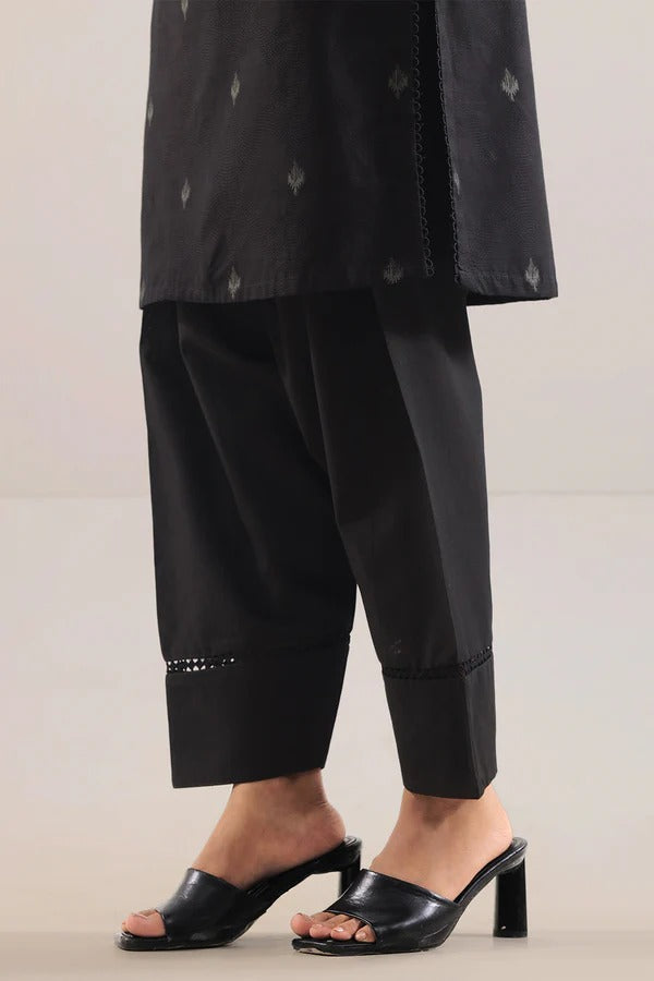 To complete this luxurious ensemble, the suit comes with a Premium Dyed Cambric Trouser (2.5m). The cambric fabric ensures durability, comfort, and a crisp fall that maintains shape throughout the day. Its versatile nature makes it ideal for straight pants, cigarette trousers, wide-leg culottes, or classic shalwar—giving you endless styling freedom.