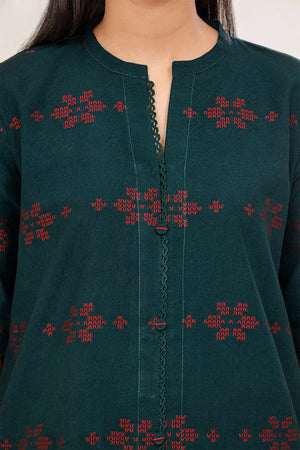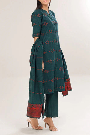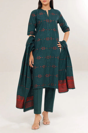 Introducing the Saya Premium Dyed Jacquard 3-Piece Suit – U02-25264-07B, a refined winter ensemble crafted for women who embrace elegance, comfort, and cultural charm. This luxurious outfit is beautifully designed in a deep teal blue shade, enhanced with subtle red jacquard motifs that add richness and visual depth to its overall appeal.