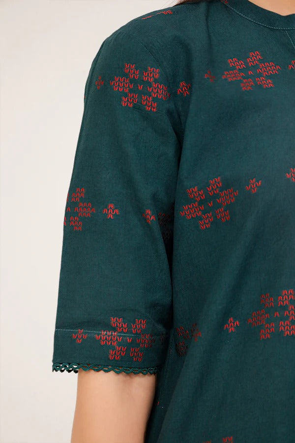 This stunning 3-piece suit is perfect for winter dinners, casual gatherings, cultural events, office wear, and seasonal festivities. Its deep teal tone paired with warm red accents gives it a sophisticated yet traditional charm—ideal for women who love subtle luxury and well-crafted winter outfits.