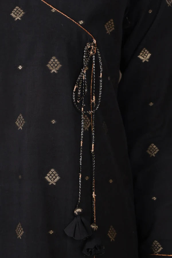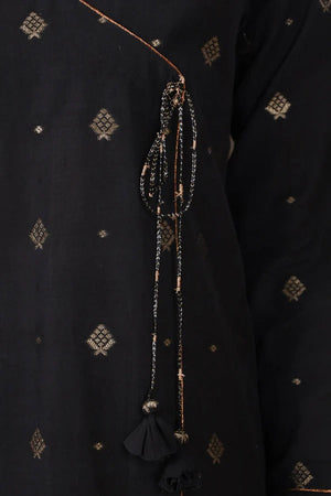 Saya Premium Dyed Jacquard 3-Piece Suit – Elegant Black Shirt, Jacquard Dupatta & Cambric Trouser