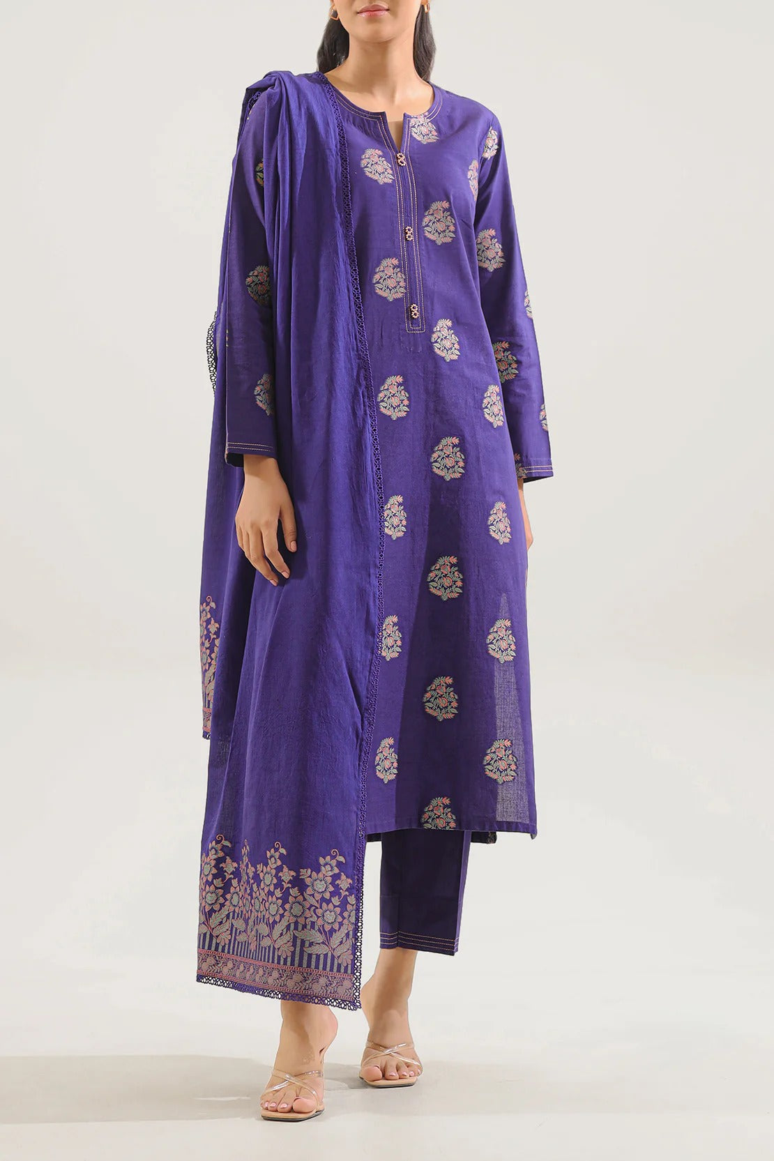 Saya Premium Dyed Jacquard 3-Piece Suit – Royal Blue Shirt, Dupatta & Cambric Trouser