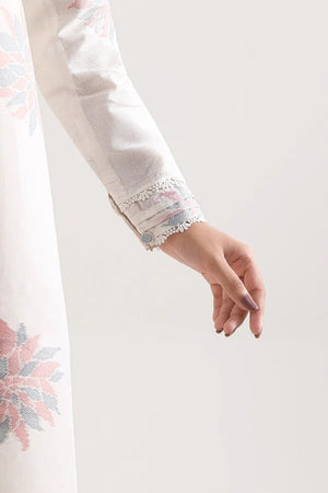 Enhancing the ensemble is the Premium Dyed Jacquard Dupatta (2.5m) in matching soft ivory. Lightweight, breezy, and luxurious, it drapes effortlessly and adds a whisper of elegance to every step you take. Its delicate craftsmanship makes it a statement piece on its own—ideal for pairing with minimal jewelry to maintain a soft, graceful look.