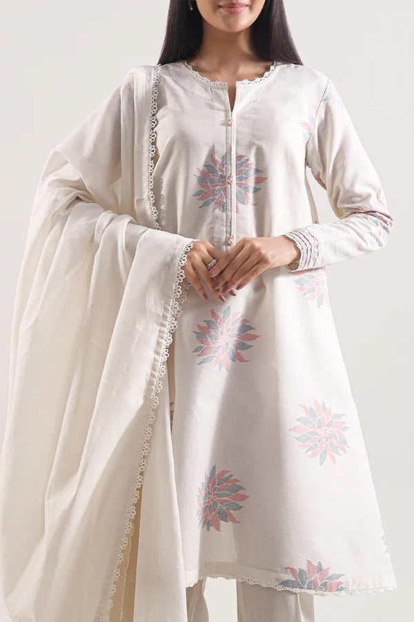 Saya Premium Dyed Jacquard 3-Piece Suit – Soft Ivory Pastel Bloom Edition
