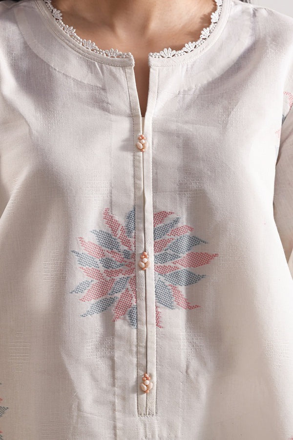 Soft Ivory Base with Pastel Jacquard Motifs